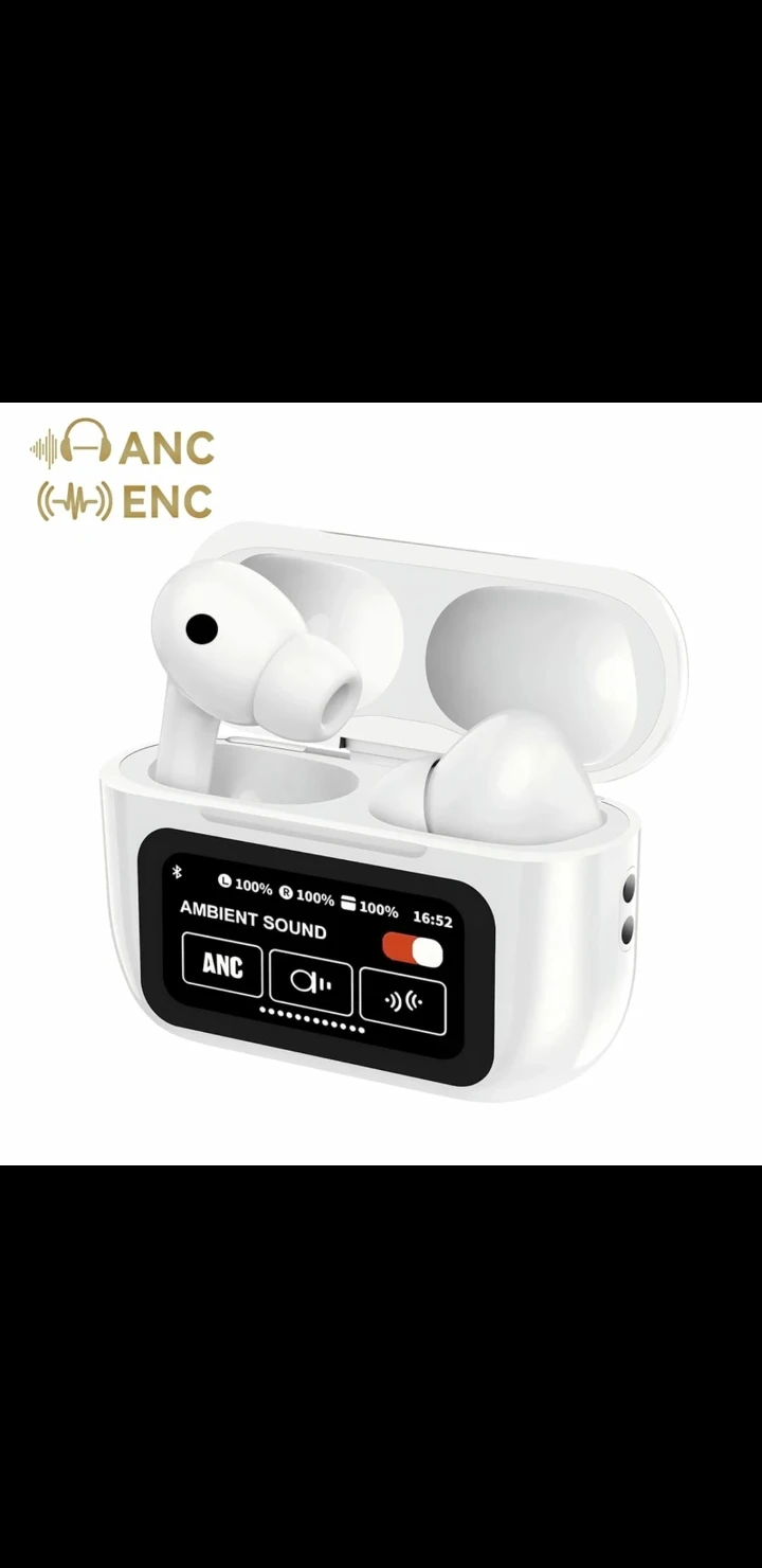 ANC/ENC TWS A9 Pro Airpods Touch Screen Type C Wireless Earbuds/Headphones Noise Cancelling in Ear Bluetooth Earphones, with Charging Case Multi Functions LED Full Color Display for iPhone / Android